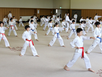 組手が中心ですが、初心者には上級者が付いて行いますので、程よく手加減されて、安全に上達できます。
