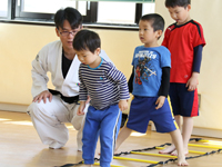 まず笑顔で楽しく練習できることが何よりこの年齢には大事なことだと思っています。焦らず、活力を持った時間を過ごすこと、満たされた状態こそが正しく成長する条件だと思っています。行いには心が伴います。靴を揃えること、道着を正しく着ること、整った行いから整った心を育てられればと思います。