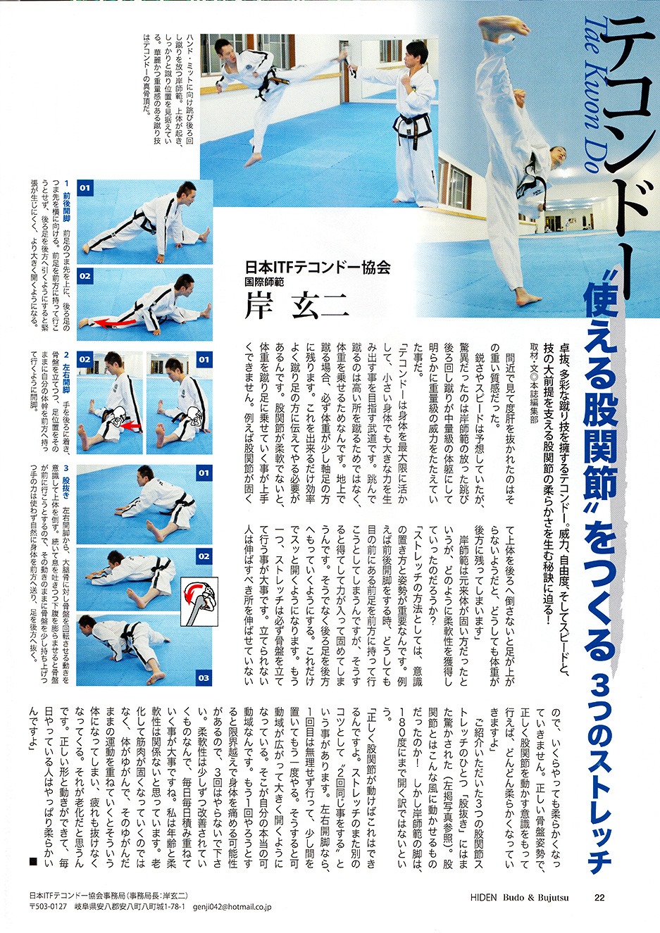 2014年11月14日発売『月刊 秘伝 12月号』の「武術の柔軟性」という特集にてテコンドーが取り上げられ岐阜道場の岸師範が取材を受けました。